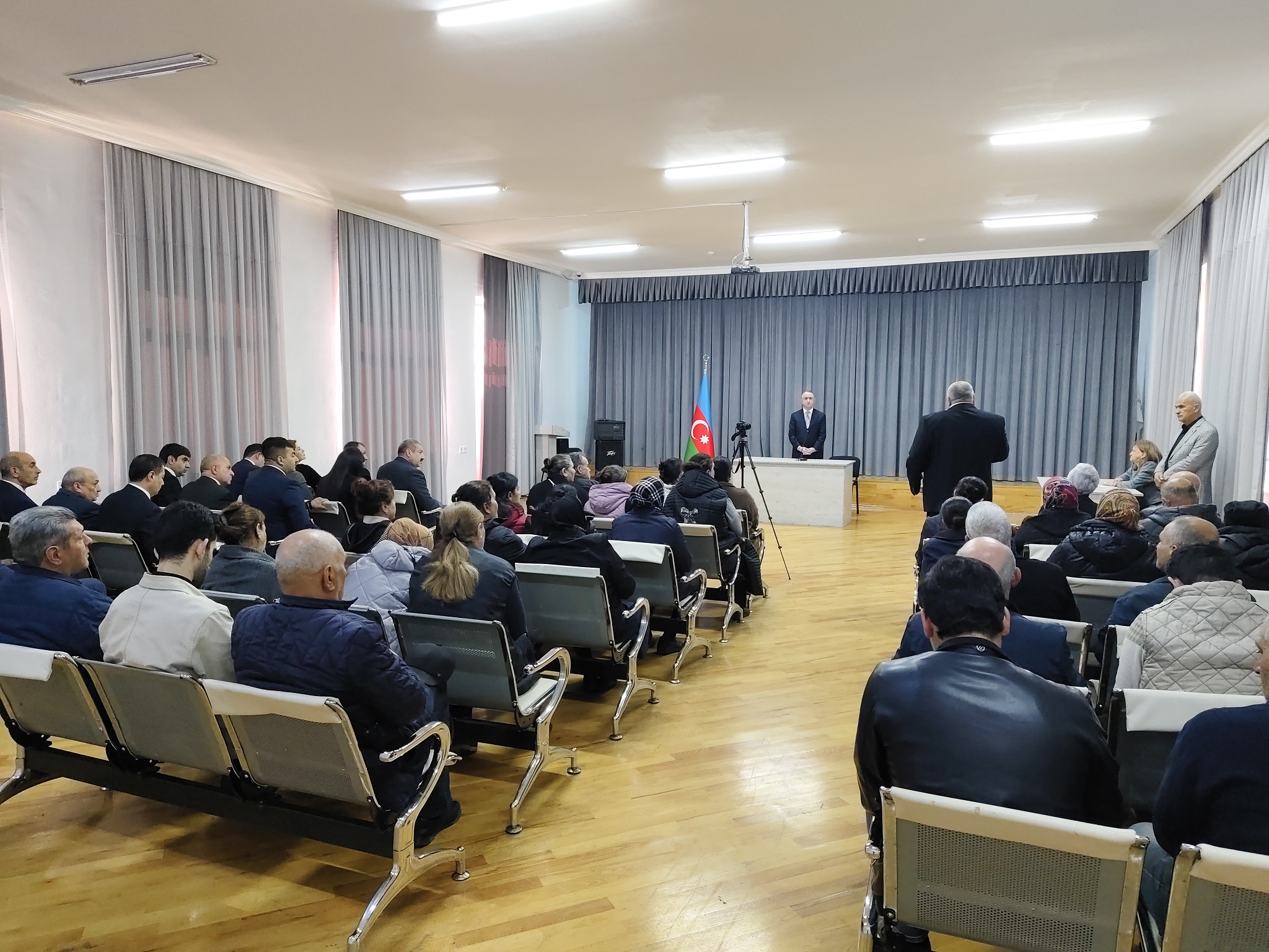 Görüşdə çıxış edən Rayon İcra Hakimiyyətinin başçısı Elgin Həbibullayev Azərbaycan Respublikasının Prezidenti cənab İlham Əliyevin tapşırıq və göstərişlərinə uyğun olaraq rayon ərazisində aparılan abadlıq quruculuq işləri, həyata keçirilən infrasturuktur layihələri, əhalinin sosial problemlərinin həlli istiqamətində həyata keçirilən tədbirlər və bu sahədə qarşıda duran vəzifələrlə bağlı sakinlərə məlumat vermişdir.